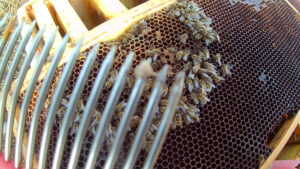 I’m not sure what this slimy stuff is, but it came out of a sealed brood cell. Not sure if it’s just rotten from being there all winter or if it’s more serious – like AFB/EFB.